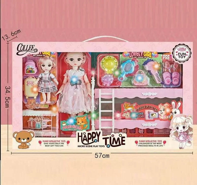 Набір ляльок 2027-18 (12) 2 ляльки, шарнірні суглоби, імітація скляних очей, підсвічування, аксесуари, велосипед, в коробці