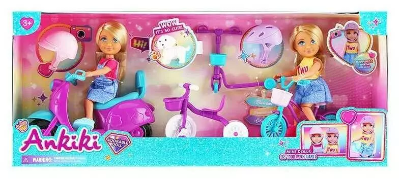 Набір ляльок 606119 (24) 2 ляльки, висота: 13 см, фігурка улюбленця, 2 велосипеди, самокат, скутер, в коробці