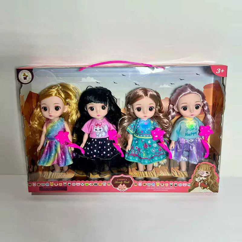 Набір ляльок A 02 E (72/2) 4 ляльки, висота 20 см, рухливі кінцівки та голова, знімний одяг та взуття, щітка для волосся, в коробці
