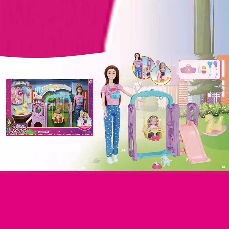 Набір ляльок WG 240 (24/2) висота: 30 см, знімний одяг, рухомі кінцівки, аксесуари, ігровий майданчик, крісло-гойдалка, собачка, в коробці
