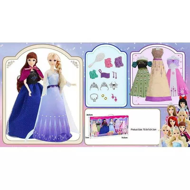 Набір ляльок 91061 H (18) 2 ляльки, висота 29см, 3 сукні, 3 пари взуття, гребінець, корони, браслети, намисто, аксесуари, в коробці