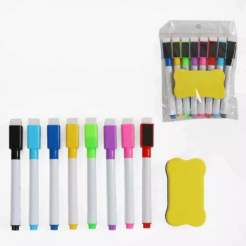 Набір маркерів C 73485 (400) 8 кольорів, “пиши-стирай”, на магнітах, стирачка, в пакеті