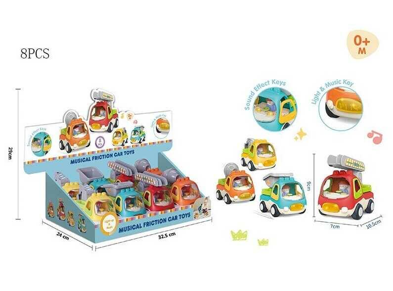 Набір машин 7753 (12) ЦІНА ЗА 8 ШТУК В БЛОЦІ, “Спецтехніка”, на батарейках, інерція, звуки, світло, в коробці