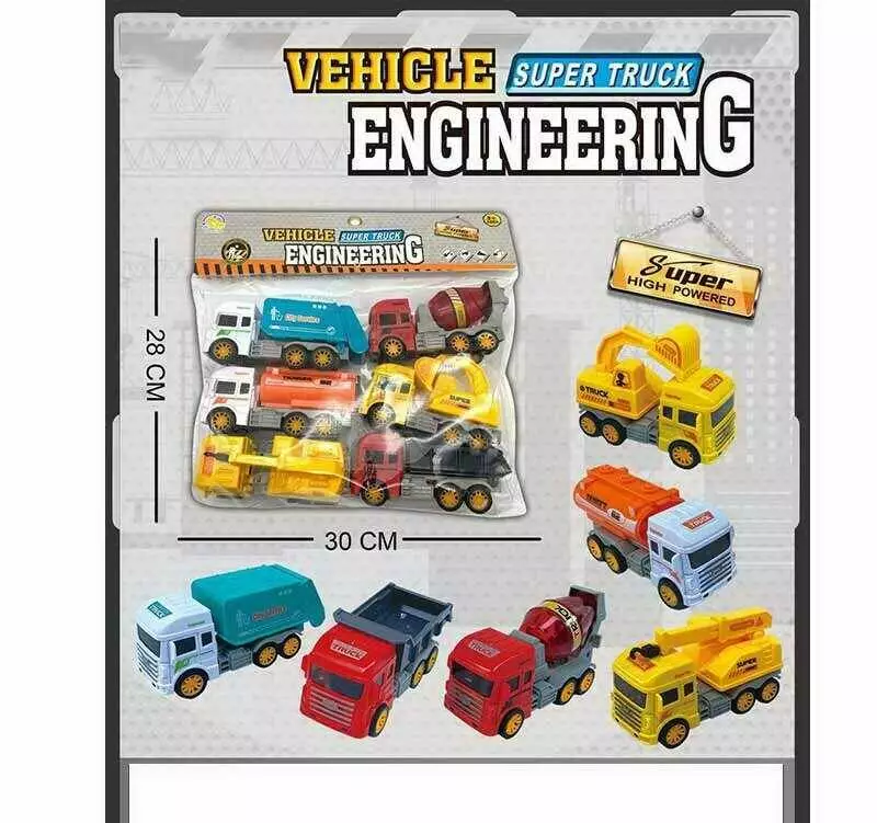 Набір машин 821 E (48) 6 штук, інерційний механізм, рухливі елементи, гумові шини, в пакеті