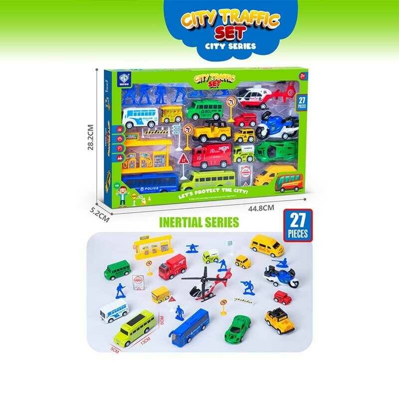 Набір машин 898 E-116 (36/2) інерція, дорожні знаки, фігурки, 1 гелікоптер, 1 мотоцикл, 12 машинок, в коробці