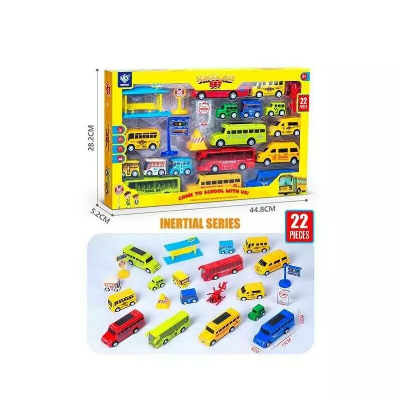 Набір машин 898 E-120 (36/2) інерція, аксесуари, автобусна станція, гелікоптер, 2 машинки, 14 автобусів, в коробці