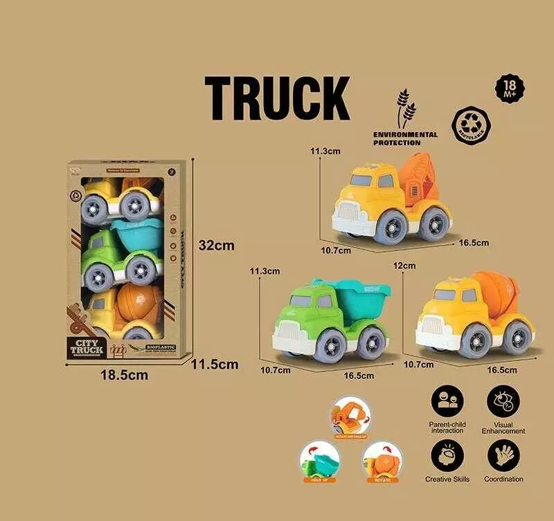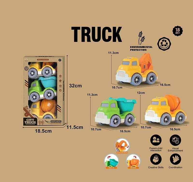 Набір машин 904-1 (36/2) 3 спецтехніки, довжина 16.5 см, рухомі елементи, біопластик, в коробці