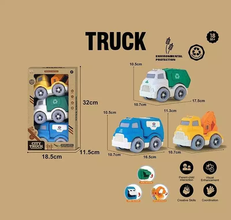 Набір машин 904-4 (36/2) 3 спецтехніки, середня довжина 17 см, рухомі елементи, біопластик, в коробці