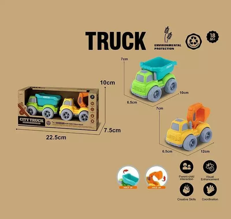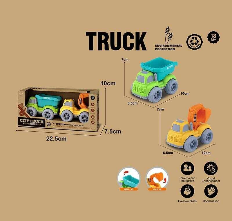 Набір машин 912-1 (120/2) 2 спецтехніки, середня довжина 11 см, рухомі елементи, біопластик, в коробці