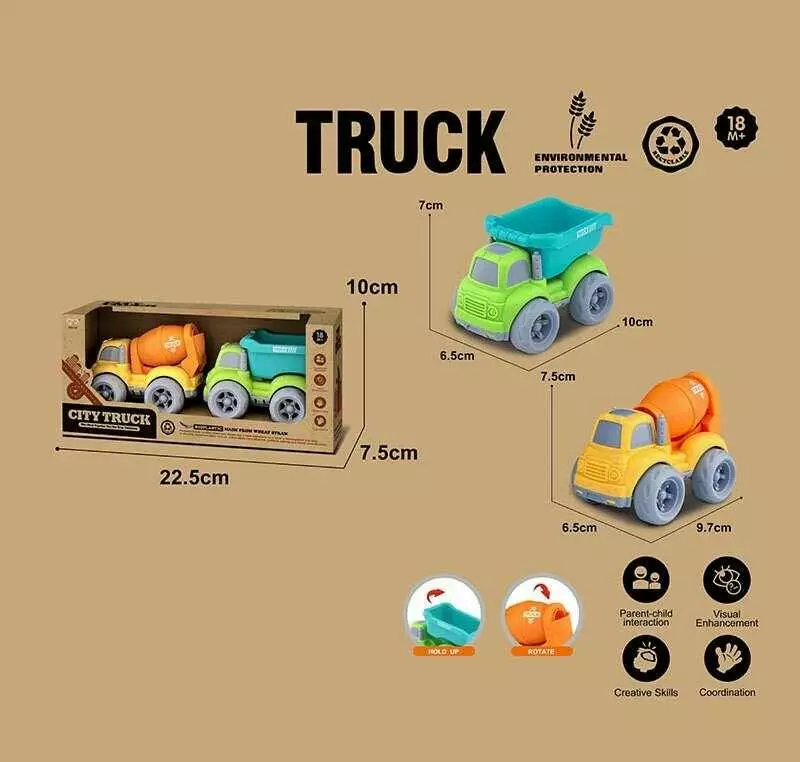 Набір машин 912-2 (120/2) 2 спецтехніки, середня довжина 10 см, рухомі елементи, біопластик, в коробці