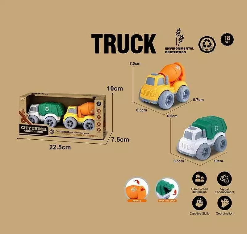 Набір машин 912-4 (120/2) 2 спецтехніки, середня довжина 10 см, рухомі елементи, біопластик, в коробці