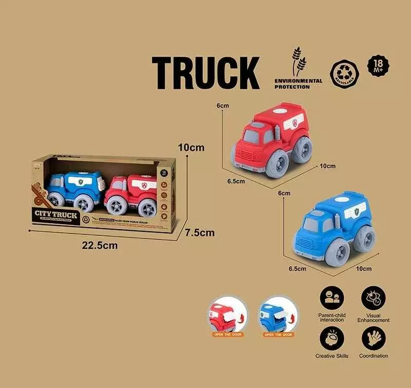 Набір машин 912-7 (120/2) 2 спецтехніки, середня довжина 10 см, рухомі елементи, біопластик, в коробці