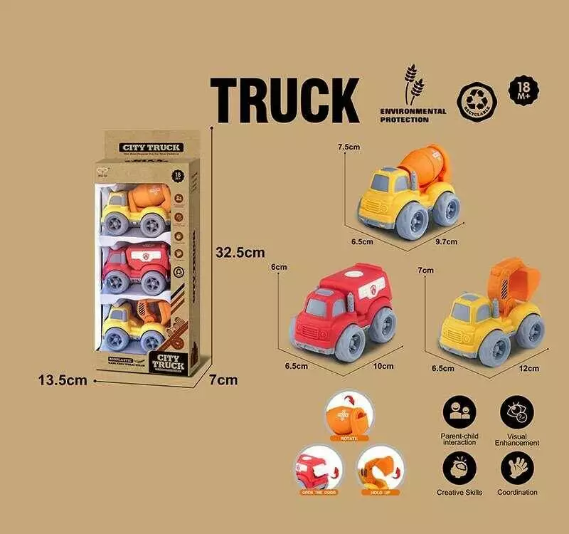 Набір машин 913-2 (96/2) 3 спецтехніки, середня довжина 11 см, рухомі елементи, біопластик, в коробці