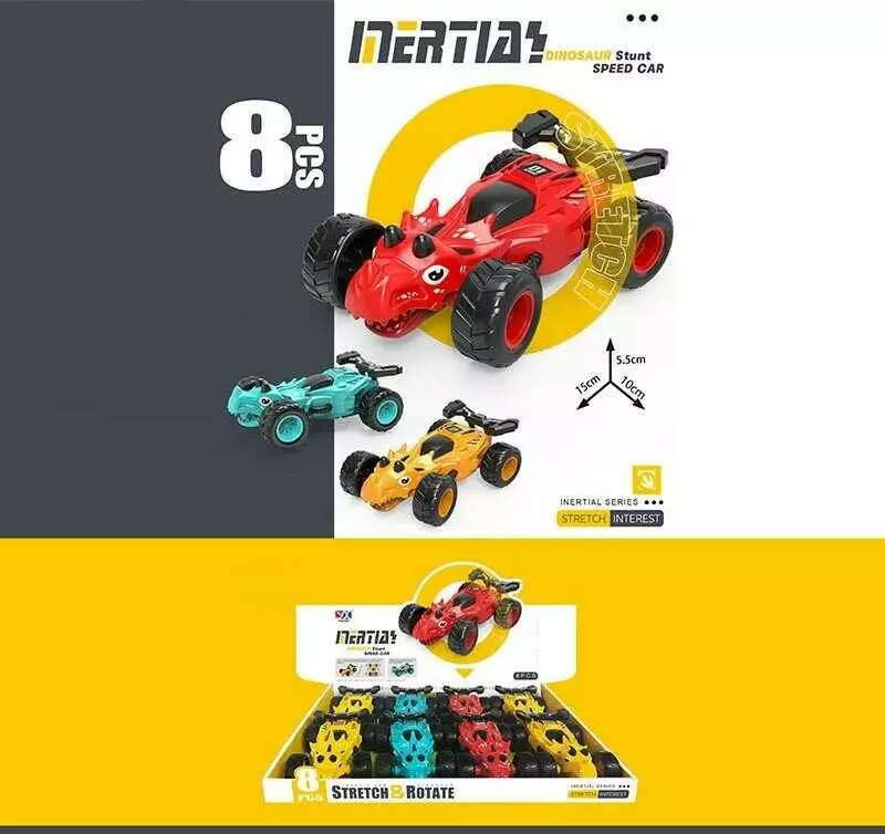 Машина 987 K-05 (24/2) ЦІНА ЗА 8 ШТУК В БЛОЦІ, "Динозавр", відкриває пащу, розтягує тіло, вертикальна їзда, інерція, в коробці