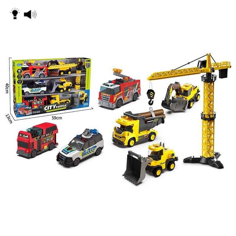 Набір спецтехніки HH 3018 (8) 7 тодиниць техніки, підсвічування, звук, інерція, рухомі елементи, в коробці