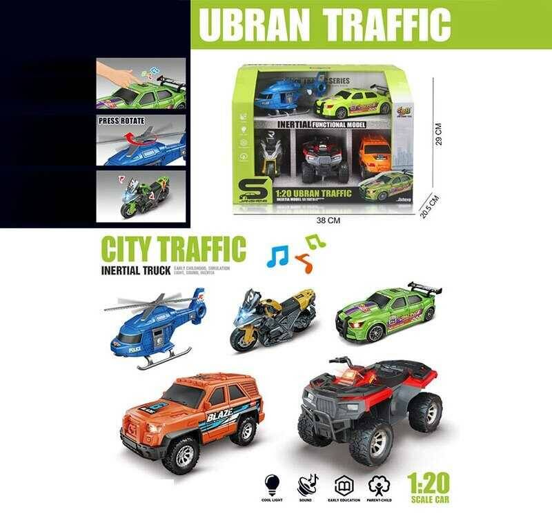 Набір машин JS 200 N (8) 5 штук, підсвічування, звуки, інерція, на батарейках, рухомі елементи, масштаб 1:20, в коробці