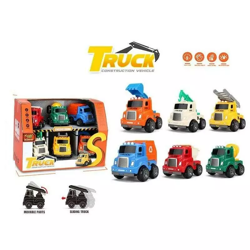 Набір машин JS 73 (12) спецтехніка, 6 штук, середній розмір: 8х6х8 см, інерція, рухомі елементи, в коробці