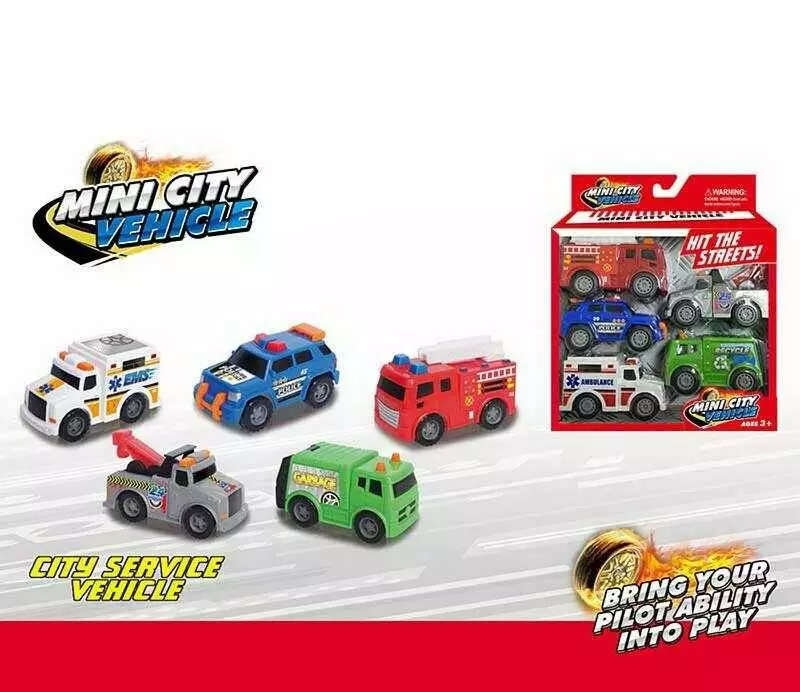 Набір машин MY 102 (48/2) 5 штук, пожежна машина, сміттєвоз, евакуатор, поліційна машина, швидка допомога, в коробці