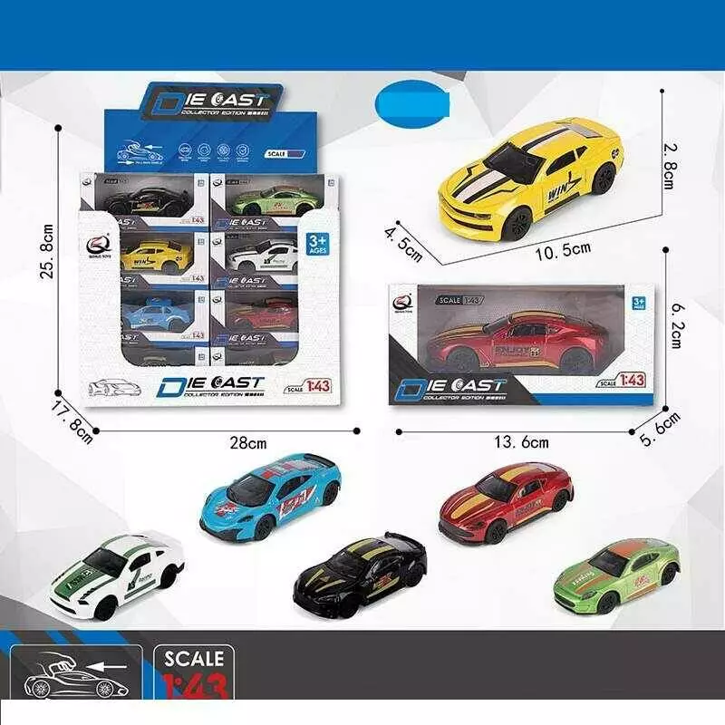 Набір машин QZ 43 I (16/2) ЦІНА ЗА 24 ШТУКИ В БЛОЦІ, 6 видів, "Перегоновий автомобіль", металопластик, інерція