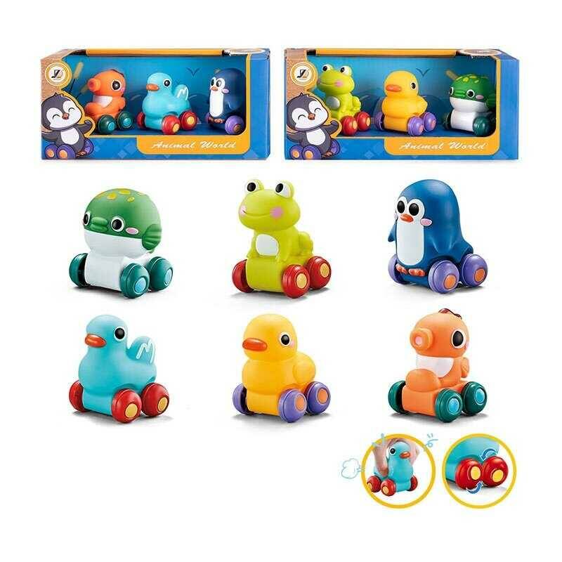 Набір машинок JZD 193 (96/2) 2 види, 3 штуки, звірятка, вінілові, в коробці