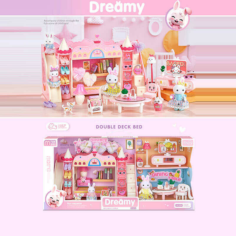 Набір меблів 6711 (12) 2 флоксові фігурки, песик, аксесуари, ліжко, столик, 2 стільчики, в коробці