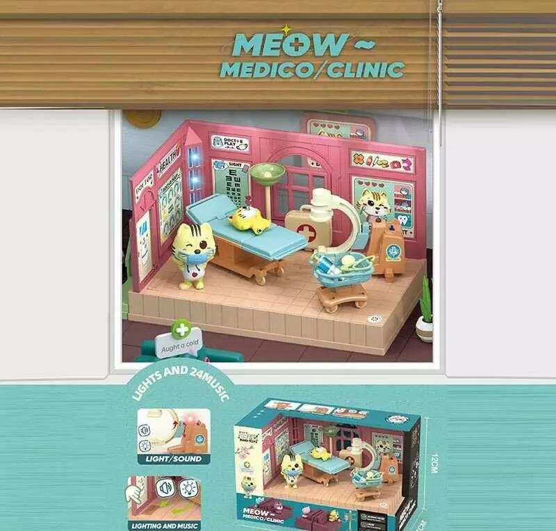 Набір меблів HY 109 C1 (60/2) “Медичний кабінет”, підсвічування, мелодії, фігурки тварин, муляжі медичн. інструментів, меблів та обладнання, в коробці