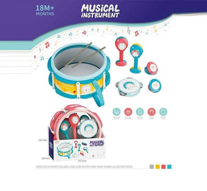 Набір музичних інструментів 3504 E (24) 2 кольори, барабан: 28х28х11.5 см, барабанні палички, маракаси, бубон, кастаньєти, ремінець, в коробці