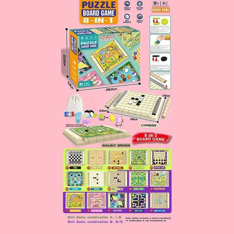 Набір настільних ігор HT 082 (48) 8 в 1, ігрове поле, фігурки, фішки, кубик, мішечок, наліпки, інструкція, в коробці