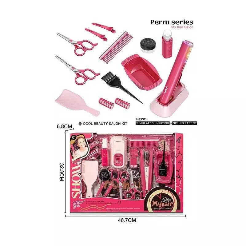 Набір перукаря 2801-4 (24/2) стайлер на батарейках, звук, підсвітка, гребінці, щітка, затискачі для волосся, ножиці, флакончики, бігуді, в коробці