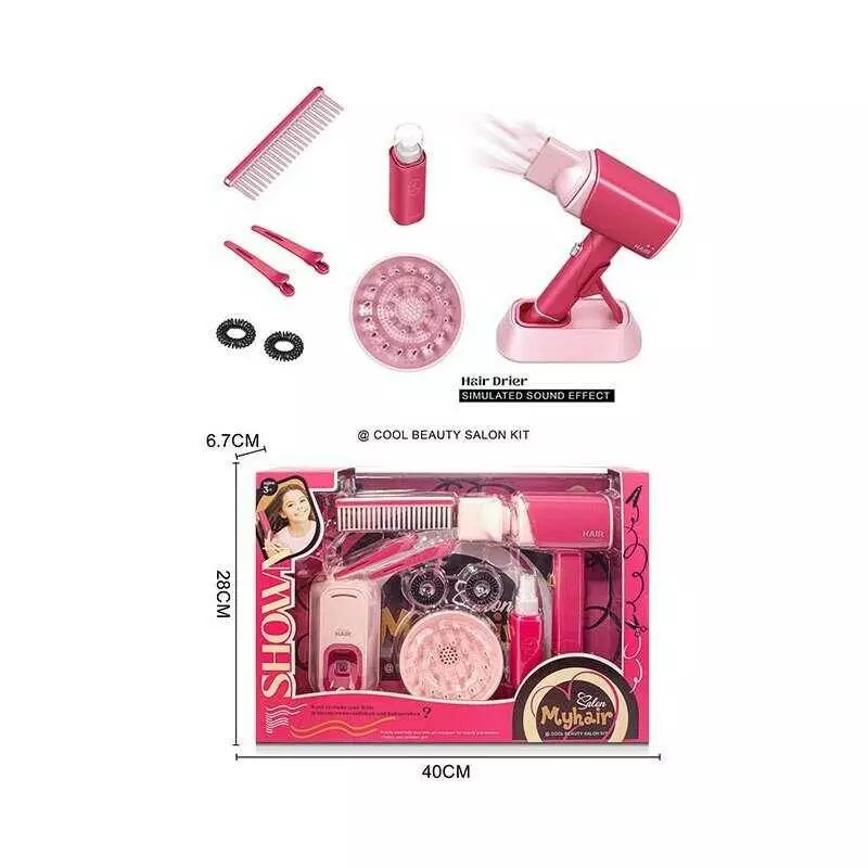 Набір перукаря 2802-3 (36/2) підсвічування, функціональний фен з підставкою, затискачі, 2 насадки, гребінець, пляшечка з розпилювачем, резинки, в коро