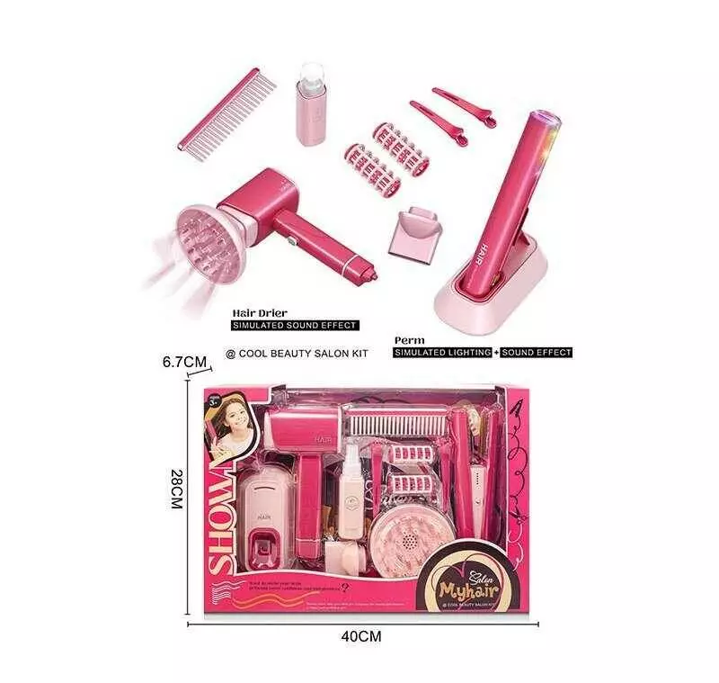 Набір перукаря 2802-4 (36/2) підсвічування, функціональний фен з підставкою, затискачі, 2 насадки, гребінець, бігуді, пляшечка з розпилювачем, резинки