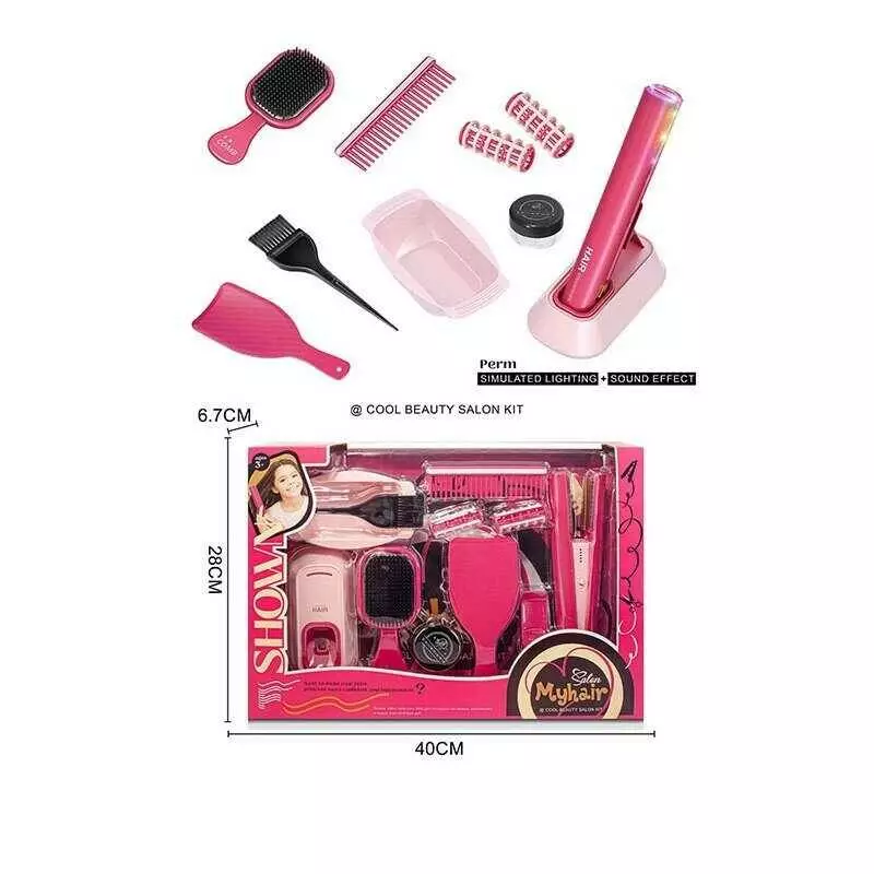 Набір перукаря 2802-6 (36/2) стайлер, звук, підсвітка, гребінець, щітка, флакончики, резиночки, мисочка для фарби, в коробці