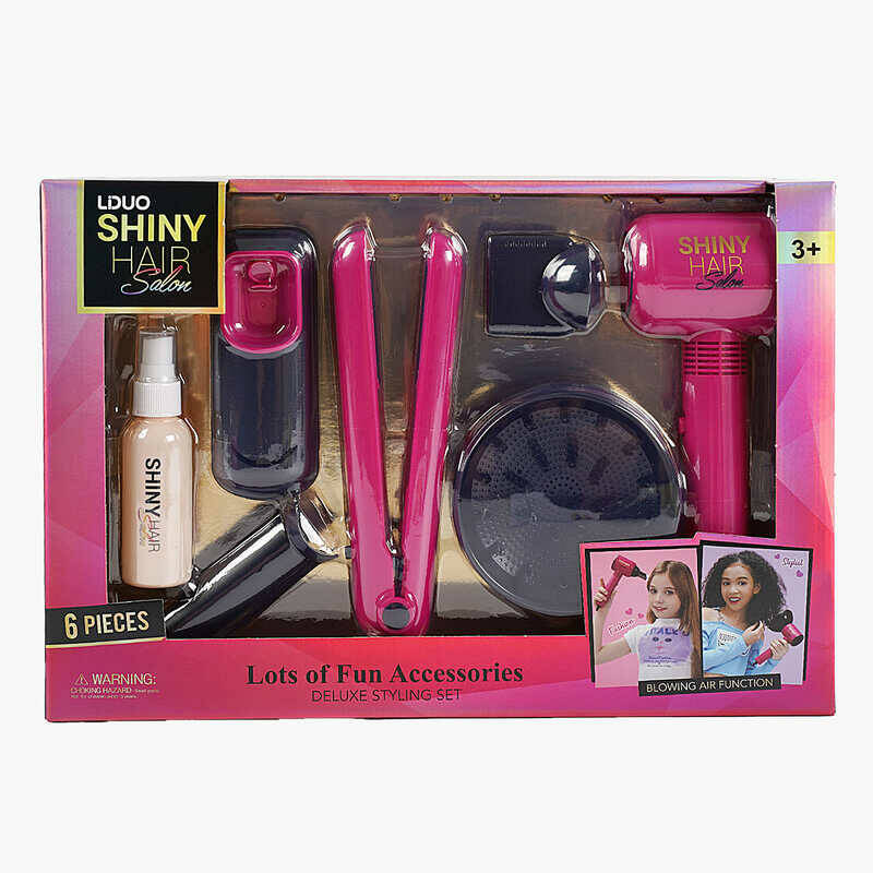 Набір перукаря 626011 (24) 6 аксесуарів, підсвічування, звук, стайлер, фен видуває повітря, 2 насадки, у коробці