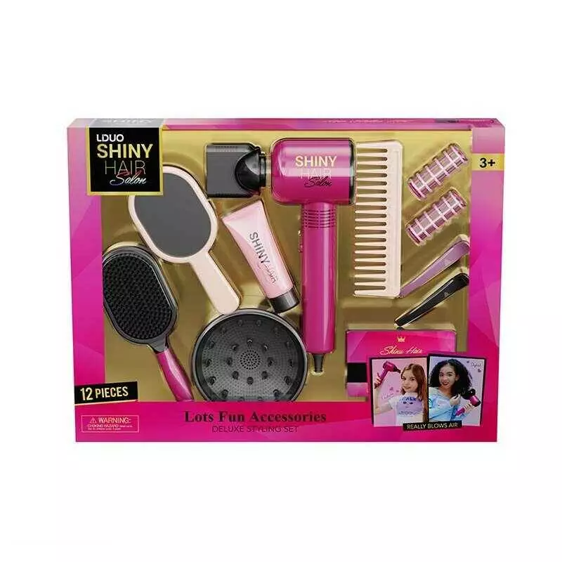 Набір перукаря 626016 (18) 12 аксесуарів, фен видуває повітря, 2 насадки, 2 шт. бігуді, 2 заколки, гребінець, щітка, люстерко, у коробці