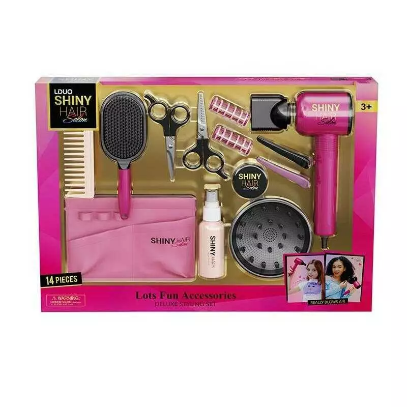 Набір перукаря 626018 (18) 14 аксесуарів, фен видуває повітря, 2 насадки, 2 бігуді, 2 заколки, гребінець, щітка, ножиці, у коробці