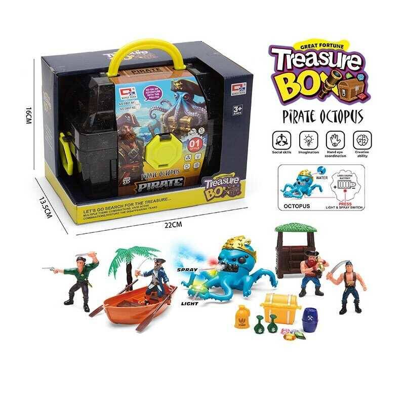 Набір піратів 0807-82 (36) 4 фігурки, човен, підсвічування, парогенератор, муляжі оточення, аксесуари, в коробці
