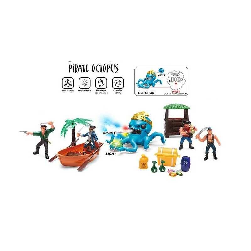 Набір піратів 0807-82 (36) 4 фігурки, човен, підсвічування, парогенератор, муляжі оточення, аксесуари, в пакеті