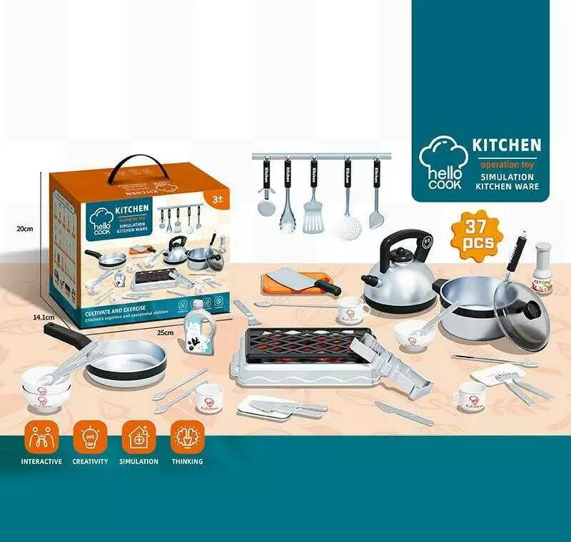 Набір посуду 0211 A (48) 37 елементів, каструлька, сковорідка, чайник, гриль, кухонні прилади, посуд, в коробці