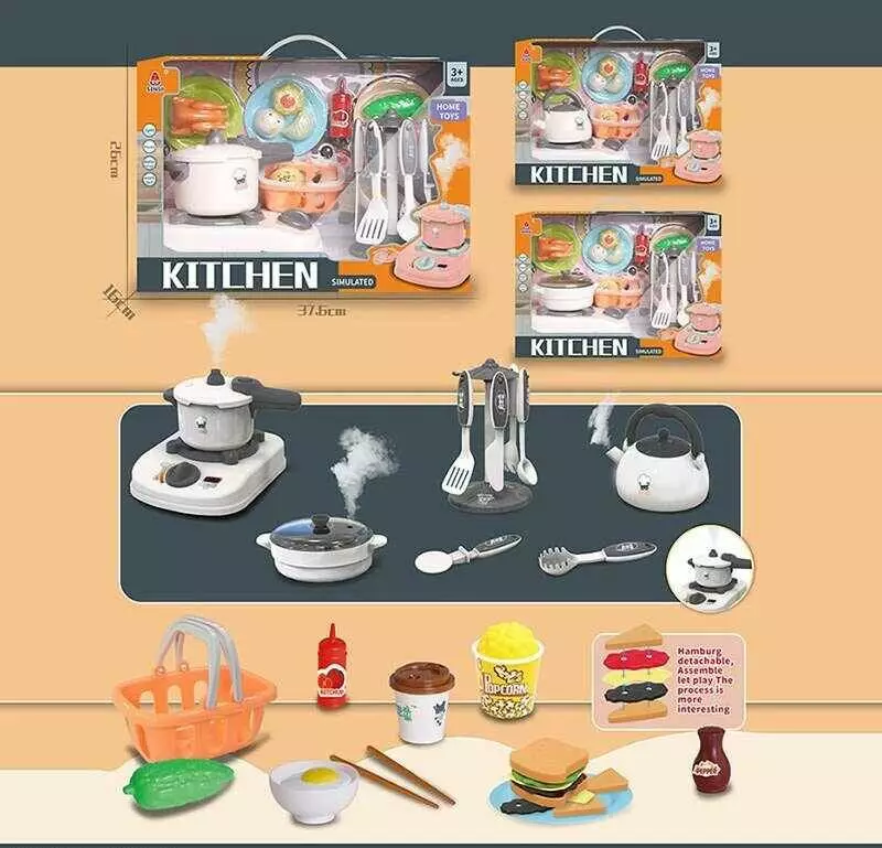 Набір посуду 096 D-5 Штрих=00254 (24/2) підсвічування, звукові ефекти, парогенератор, посуд, продукти, в коробці, ВИДАЄТЬСЯ ТІЛЬКИ МІКС ВИДІВ