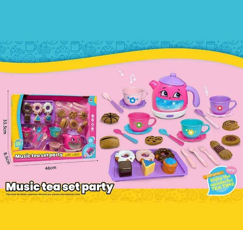 Набір посуду 3221 A (30) чайник, підсвічування, звуки, мелодії, датчики руху, на батарейках, посуд, солодощі, в коробці