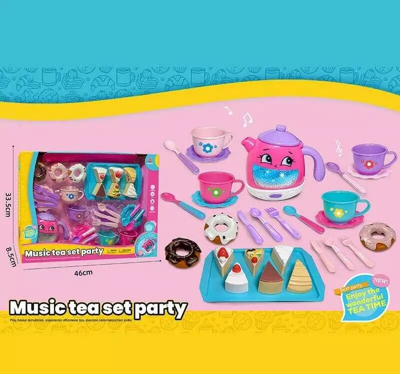 Набір посуду 3221 B (30) чайник, підсвічування, звуки, мелодії, датчики руху, на батарейках, посуд, солодощі, в коробці¶