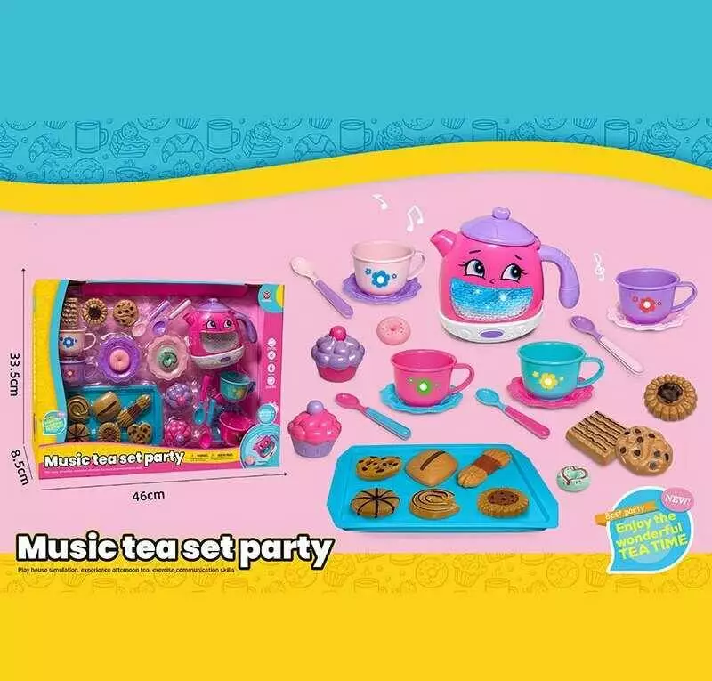 Набір посуду 3221 D (30) чайник, підсвічування, звуки, мелодії, датчики руху, на батарейках, посуд, солодощі, в коробці