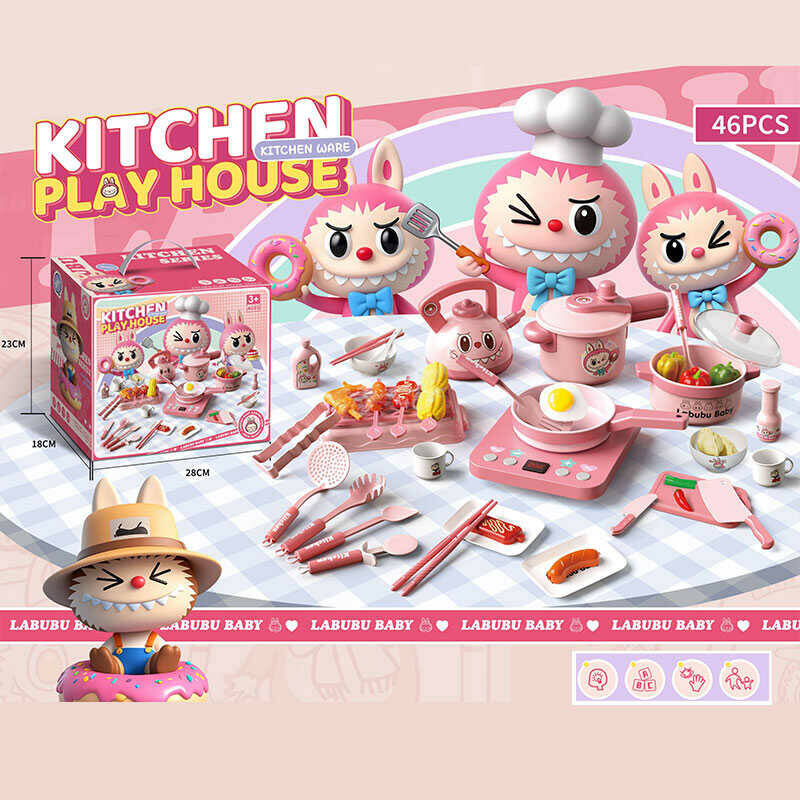 Набір посуду S 20-11 A (24) плита, каструлька, пательня, чайник, сотейник, столик для барбекю, харчові продукти, дощечка, кухонне приладдя, в коробці