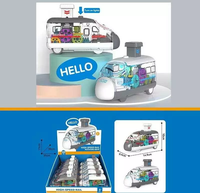 Набір потягів HY 609 (16/2) підсвічування, заводний механізм, шестерінки обертаються, ЦІНА ЗА 10 ШТУК В БЛОЦІ, в коробці