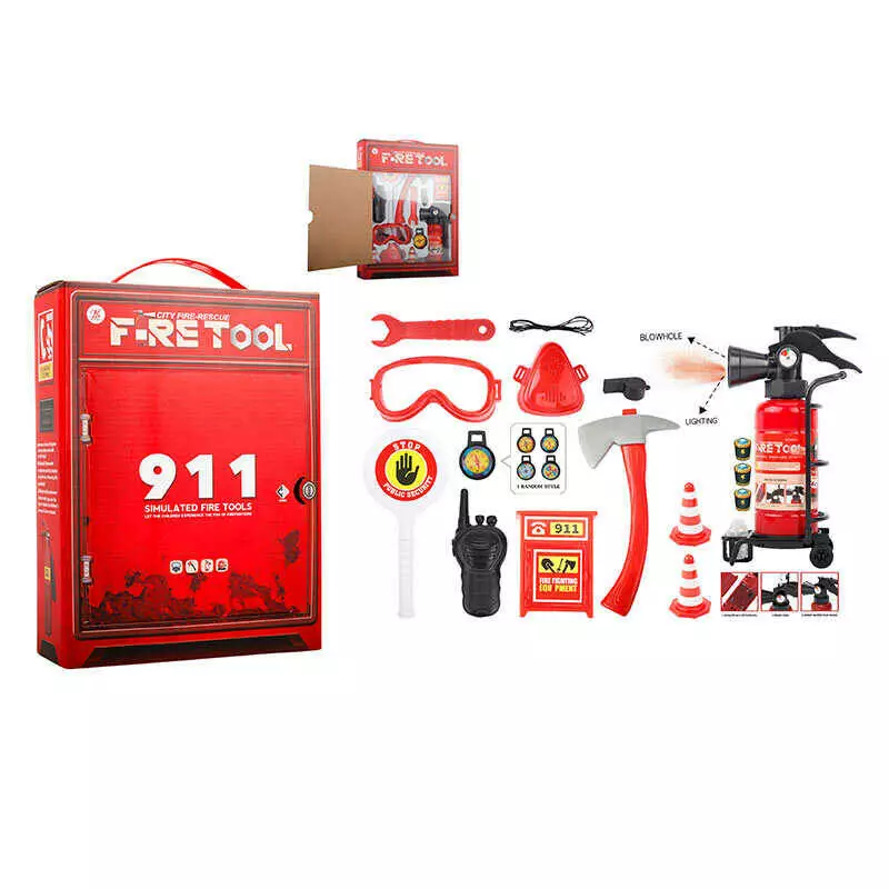 Набір пожежника BB 9019 C (36/2) вогнегасник із світлом, звуком сирени та парогенерацією, респіратор, компас, рація, свисток, сокира, ключ, в коробці
