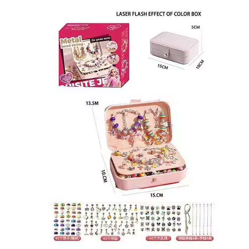 Набір прикрас 5568-1 B (36) 132 аксесуари, шарми, основи для браслетів, основи для намиста, скринька, в коробці