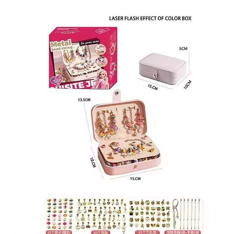 Набір прикрас 5568-2 A (36) 132 аксесуари, шарми, основи для браслетів, основи для намиста, скринька, в коробці