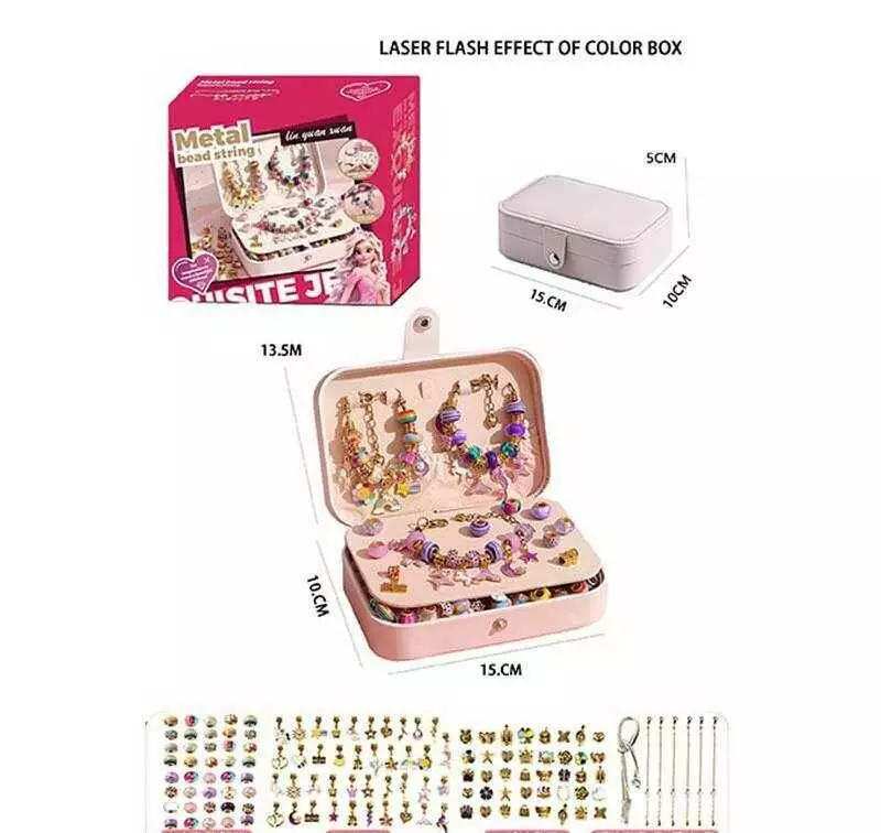 Набір прикрас 5568-2 B (36) 132 аксесуари, шарми, основи для браслетів, основи для намиста, скринька, в коробці