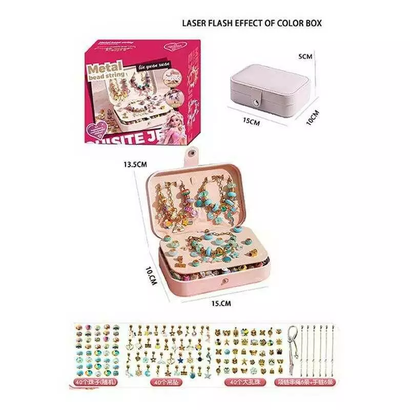 Набір прикрас 5568-2 C (36) 132 аксесуари, шарми, основи для браслетів, основи для намиста, скринька, в коробці