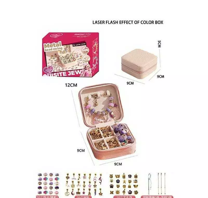 Набір прикрас 5568-4 C (36) 66 деталей, текстильна шкатулка, 2 види шармів, основи для прикрас, металеві підвіски, в коробці